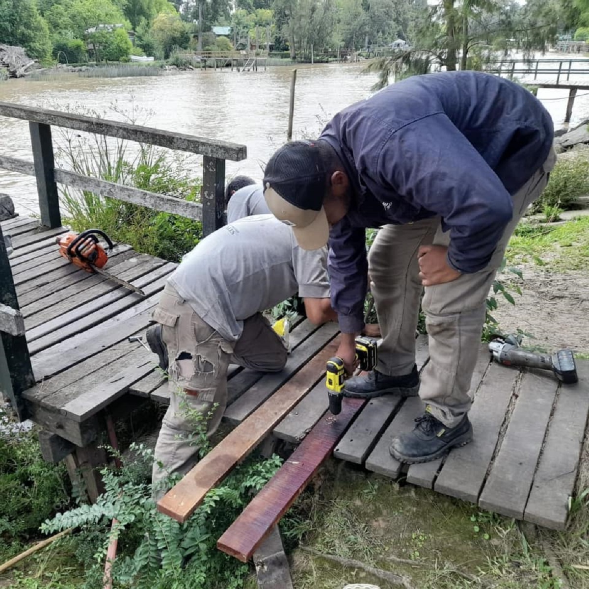 El Municipio de Tigre continúa realizando trabajos de mantenimiento en distintos puntos del territorio del Delta. En ese marco, se realizó la reparación de dos muelles y labores de limpieza y parquización en dependencias estatales.